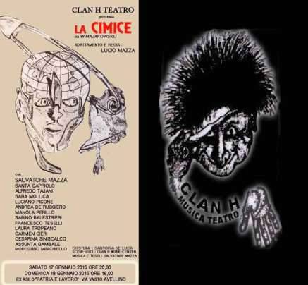Avellino,Clan H – Secondo appuntamento della rassegna “Oltre il Teatro” curata dalla Compagnia Teatrale Clan H presso l’Ex Asilo “Patria e Lavoro” di Avellino. Dopo il successo della commedia “Roba da pazzi” gli attori della compagnia teatrale di Avellino cambiano registro e per questo nuovo spettacolo autoprodotto, sotto la guida del regista Lucio Mazza e dell’istrionico Salvatore Mazza, portano in scena il teatro di ricerca di V.Majakovskij. L’autore Polacco descrisse così la sua opera