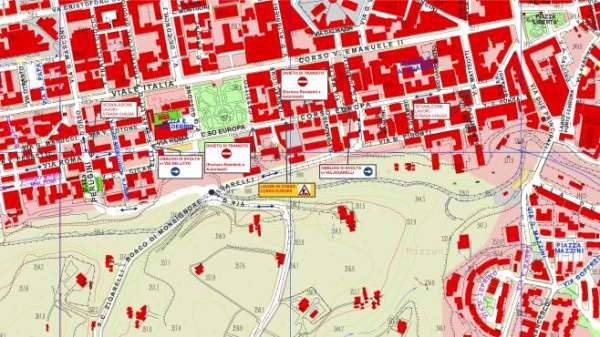Intanto alcuni addetti dell’Acs hanno iniziato a diffondere tra i residenti di Corso Europa dei volantini informativi che serviranno ad orientare meglio chi vive o lavora nella zona. Tutte le iniziative possibili, ma fattibili –chiarisce l’assessore Preziosi – verranno messe in atto dall’amministrazione comunale per consentire ai cittadini, ai lavoratori e alle attività commerciali della zona di poter continuare a svolgere in piena sicurezza e regolarità le proprie attività con la convinzione che da qui ad un anno soprattutto loro potranno godere dei benefici di questi interventi”. A seguire la piantina del piano traffico del primo lotto dei lavori a Corso Europa.