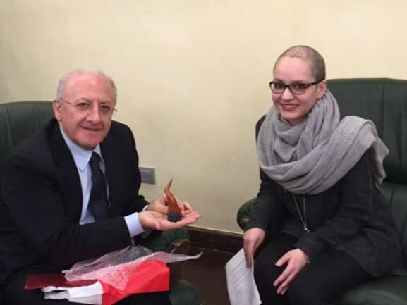 Il Presidente della Regione Vincenzo De Luca ha incontrato ieri mattina Francescapaola Mattias. La studentessa, colpita da una grave patologia, aveva scritto al governatore a metà dello scorso mese di ottobre per l’impossibilità – come tanti malati della Campania – di sostenere le cure a causa della vergogna dei tetti di spesa sforati nelle strutture sanitarie della regione. Insieme ai suoi familiari, Francesca ha voluto incontrare il Presidente De Luca innanzitutto per comunicare un positivo evolversi delle cure, ma anche per illustrare il progetto sulla riqualificazione di piazza Carlo III iniziato cinque anni fa insieme con lo zio, fondatore del Comitato Civico Carlo III.
