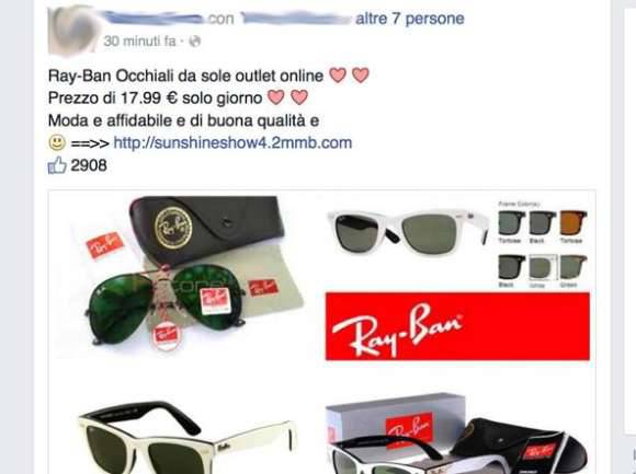 Fine anno senza la classica vendita di occhiali falsi su Facebook? impossibile ormai è diventata una tradizione come il panettone a Natale. Sono 4 anni che gli immancabili sconti sugli occhiali da sole Ray-Ban fanno sognare milioni di internauti, ma in realtà è un virus ed anche abbastanza fastidioso. Vediamo come riconoscere il link pericoloso e come proteggersi.