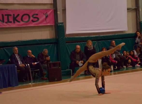 Apertura del calendario agonistico della Federazione Ginnastica d’Italia con la disputa della prima prova del campionato regionale di specialità ritmica andato in scena al Country Sport di Capriglia Irpina (AV). Cinque le specialità, palla,cerchio, fune,clavette,nastro, sia per le junior sia per le senior, oltre alla specialità della coppia. La parte del leone l’hanno fatta le padrone di casa della Evoluzione Gymnikos di Marina De Santo che sono salite per ben sei volte sul gradino più alto del podio. Annunziata Orlando si è imposta al nastro e al cerchio junior, Marilena Caiazzo alla palla e alle clavette junior, mentre Zhenina Trashlieva ha dominato palla (nella foto) e cerchio senior. Due successi per la Poseidon Salerno di Daniela Rinaldi con la senior Miriam Buonerba al nastro e con la coppia Ragone-Solfino. Altrettanti per la Raffa Napoli di Carmen Niro con Marta Morra alla fune junior e Sara Crupi alle clavette senior. La giuria presieduta da Alessia Mari ha assegnato l’11° successo ad Elena Chiavazzo, della Ginnastica Sorrento di Pia Cuomo, nella fune senior. Hanno provveduto alle premiazioni il Vicepresidente nazionale Rosario Pitton ed il Presidente regionale Michele Sessa. Seconda e decisiva prova per l’assegnazione dei titoli regionali, e per le qualificazioni all’interregionale, in programma il 21 febbraio nello stesso impianto irpino, sede del Centro Tecnico Federale dove è già iniziato il piano degli allenamenti collegiali regionali 2016 con il supporto di tecnici esterni