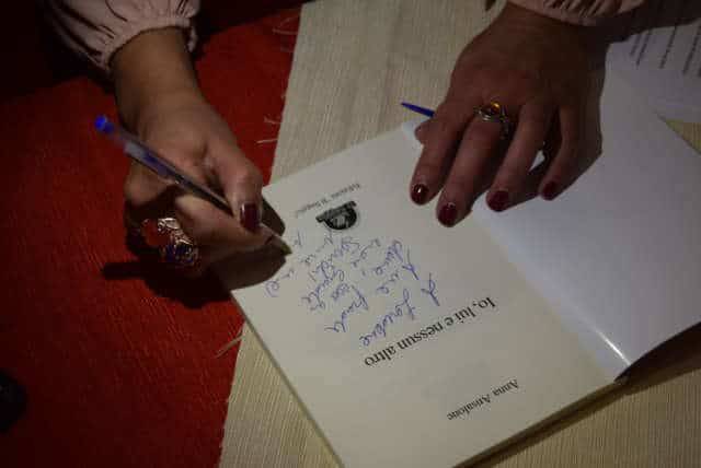 Alla fine, il pubblico intervenuto dopo aver acquistato una copia del romanzo, ha richiesto una dedica personale all’autrice, dimostrando con apprezzamenti lusinghieri e sinceri, di aver gradito lo svolgersi dell’evento, giudicandolo emozionante e coinvolgente, in relazione soprattutto alla delicata tematica affrontata.