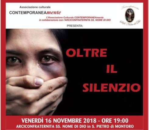 L’ Associazione culturale CONTEMPORANEAMENTE, venerdì 16 novembre alle ore 19,00 – presso la settecentesca Chiesa dell’Arciconfraternita S.S. Nome di Dio in S. Pietro di Montoro (AV) – organizza OLTRE IL SILENZIO, un convegno – dibattito sul tema della violenza contro le donne.
